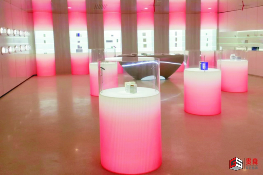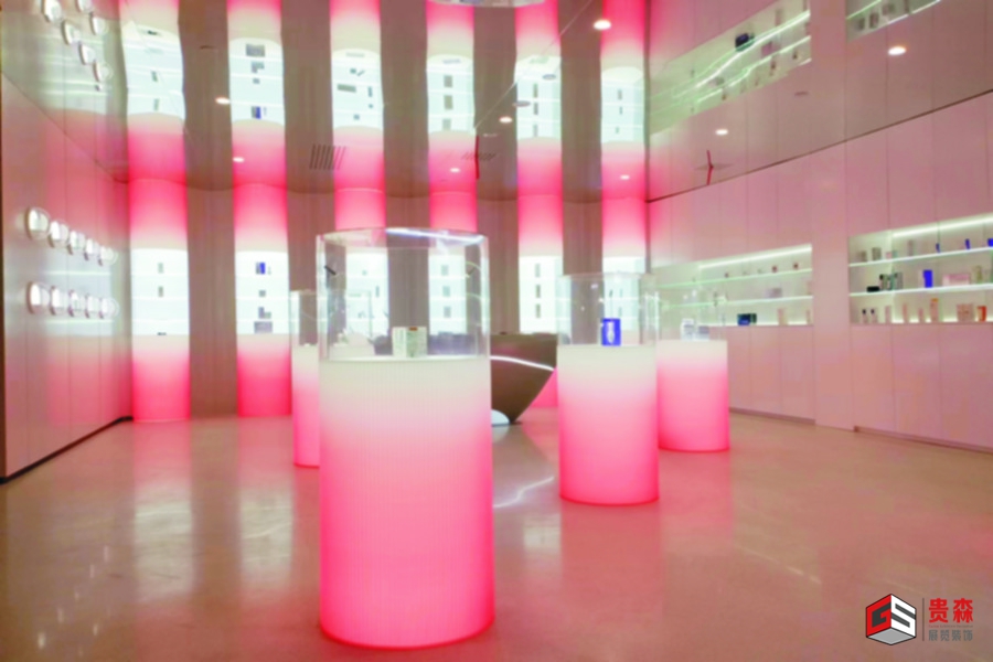 可丽金产品展示厅以纯净、科技、护肤为核心设计语言,采用渐变粉白发光展柜与柔和环境光,营造轻盈通透的空间氛围,精准传递品牌护肤理念。透明展陈与智能灯光突出产品质感,整体空间兼顾产品展示与体验互动,为美妆护肤企业打造兼具美感与传播力的专业展示场景。